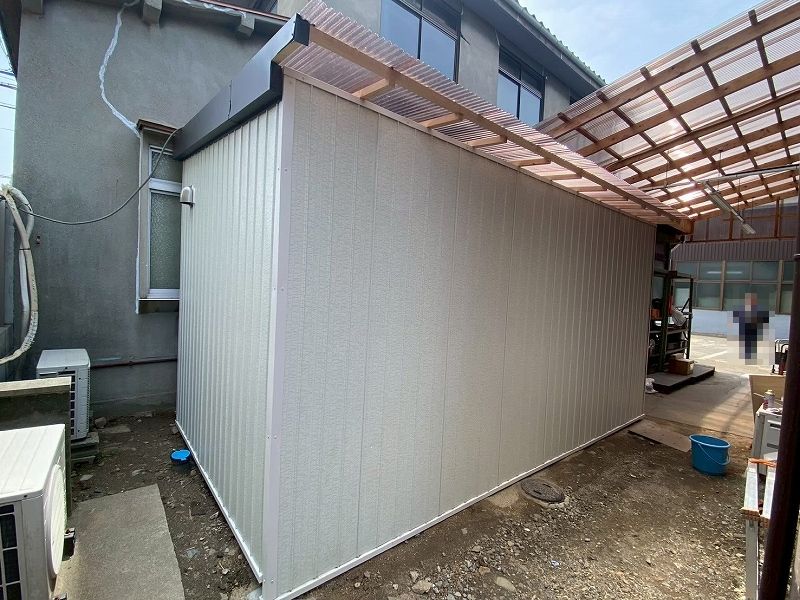右京区の工場の外部トイレの外装の張替えをさせていただきました。