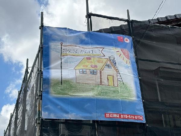 伏見区の居宅で外壁改修工事をさせていただいています。 新作です。 職人さんから、「絵がうまくなった」と言ってもらいました。