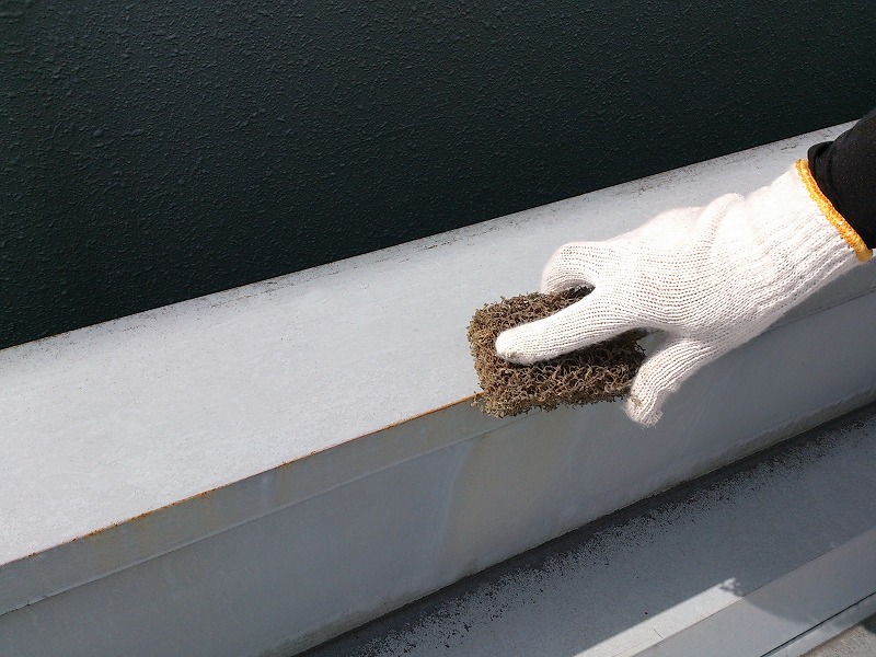既存FRP防水の上から、コンパネを貼ることにより、下地と縁を切って、その上から新たにFRP防水を施工させていただきました。