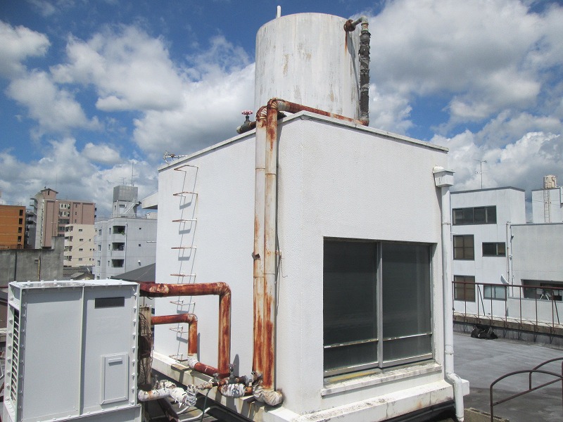 中京区のマンションで外装改修工事(屋上防水、外壁塗装)をさせていただいています。