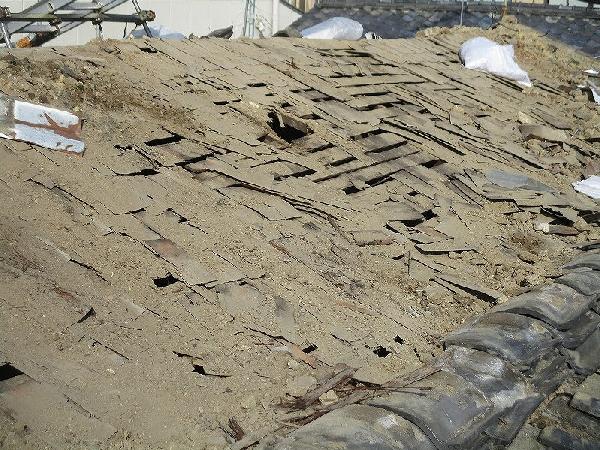 雨漏り調査で屋根に上がると、瓦をシールで止めてありました。ラバーロック工法と言って、はやっていたようですが、瓦は地震や台風の揺れや震動に、その一つ一つが魚の鱗みたいにストレスを吸収し合うように作られているので、瓦をシールで止めるのはあまりお勧めできません。それが、あろうことか縦方向にもシールがしてありました。これでは入った水が抜けるところがないので、雨漏りします。