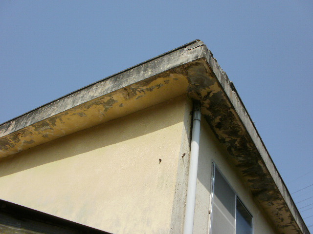 雨漏りにより軒裏のペンキが剥がれています。 見た目が悪いだけではなく、建物の耐久性も落ちてしまいます。 防水を至急する必要があります。 ※被害状況の調査・見積もりは無料ですので、お気軽にご相談ください。